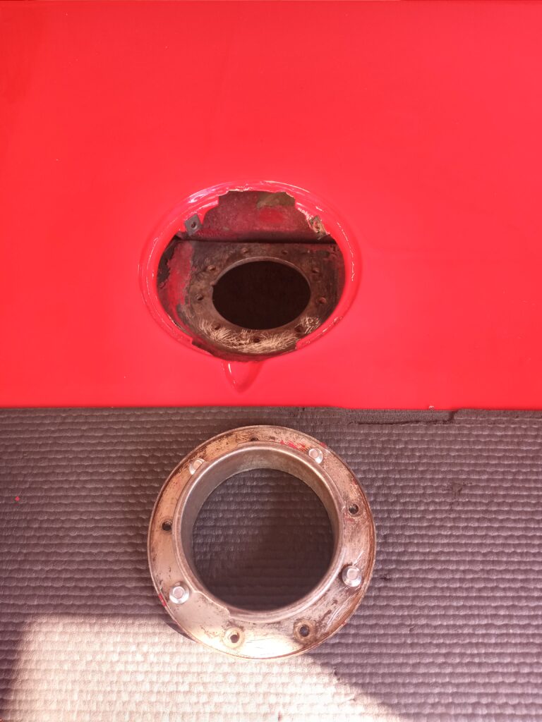 A big rubber boot and drain hose were installed next. In the event fuel is spilled while filling, the boot will collect it and the gas won’t eat away at the cork gasket again.