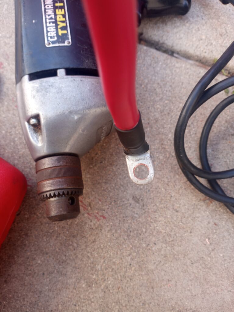 Thankfully I thought ahead on the installation and started with the starter. Ha. The mounting terminal for the starter post was too small. I had to drill it out. The battery powered drill wasn’t strong enough, thankfully I’ve been carrying around this monster cabled drill for the past 30 years. Both positive and negative need this.