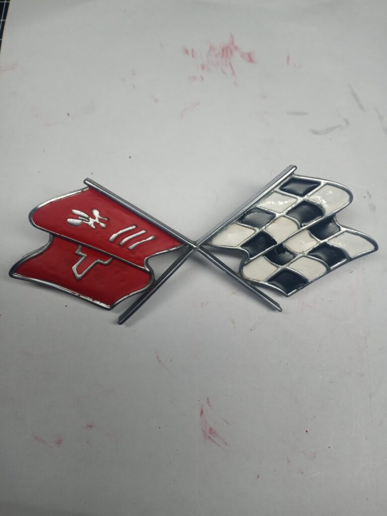 The emblem on the fuel tank door was beat up. I bought this new ten-ish years ago for about $50. Now they’re $95. Screw that, I have the right paint. I’m doing this. It took about an hour total over a day or two. I just added a coat here and there, then added some layers of clear. Not perfect, but I like how it turned out. Now I’ll need to do the front.
